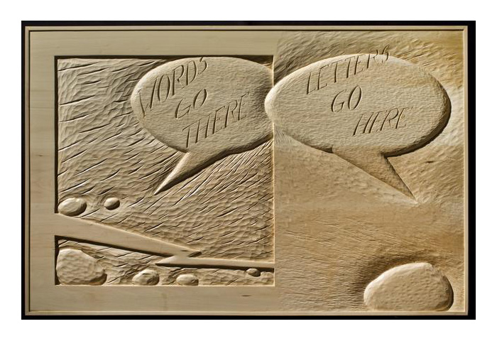 CRAIG DEINES surveys the artist's series of flat-relief carved wood panels. Referring to the carved marks as "brush strokes" and the surface as "vital material," the artist approaches the sculptural works with a painterly sensibility, emphasizing their organic material, and infusing each work with a sense of life and growth. Reflecting surreal vistas, the works incorporate a focused index of visual iconography, in particular the recurring graphic novel/cartoon trope of the "thought bubble." The structures are used to imply semiotics, ideas, dreams, desires, or our hidden potential; though most are left blank, reflecting the human impulse to inscribe meaning within the void.