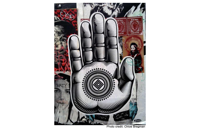 The book focuses on CRYPTIK’s street art and features many of his iconic images including Buddha, the Buddha Palm, Ganesha, and Gandhi. Images from many different photographers/artists are included, as they have captured his work in unique situations. The book documents a powerful body of work in both color and black/white plates… and it generates more questions than answers.