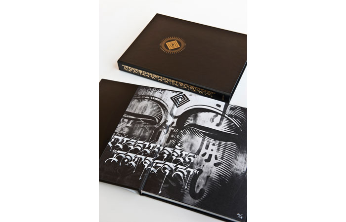 Laminated clamshell box with gold foil stamping: 11.5 x 8.5 x 1.5” (29.2 x 21.6 x 3.8 cm)