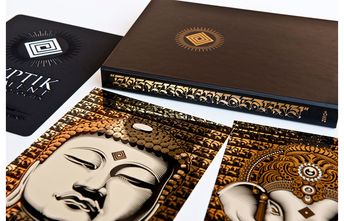 2) Limited edition stickers / two-color + UV coating on chrome mylar: 10 x 7.5” (25.4 x 19.1c m)